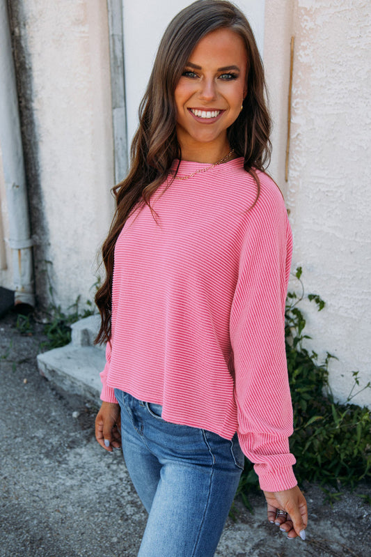 Bonbon Solid Color Corded Textured Long Sleeve Top