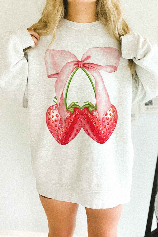 COQUETTE STRAWBERRY RIBBON OVERSIZED SWEATSHIRT