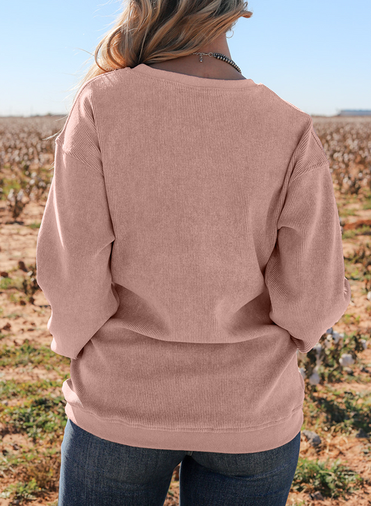Pink Steer Head Cowboy Print Corded Pullover Sweatshirt