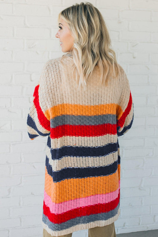 Stripes Knitted Balloon Sleeve Open Cardigan