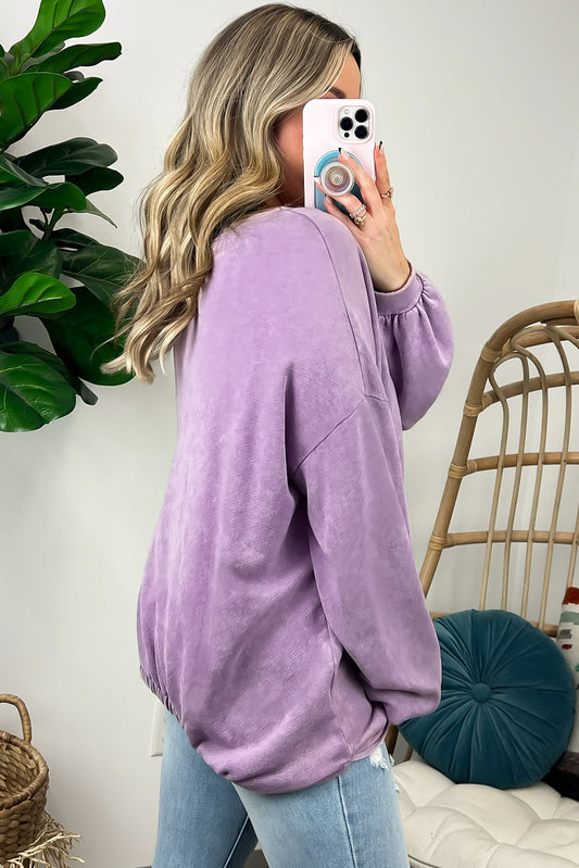 Wisteria Mineral Wash Drop Shoulder Casual Sweatshirt