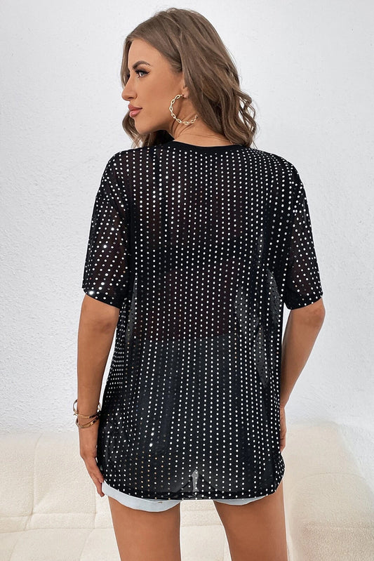 Black Sequin 3/4 Sleeve Open Front Duster Kimono