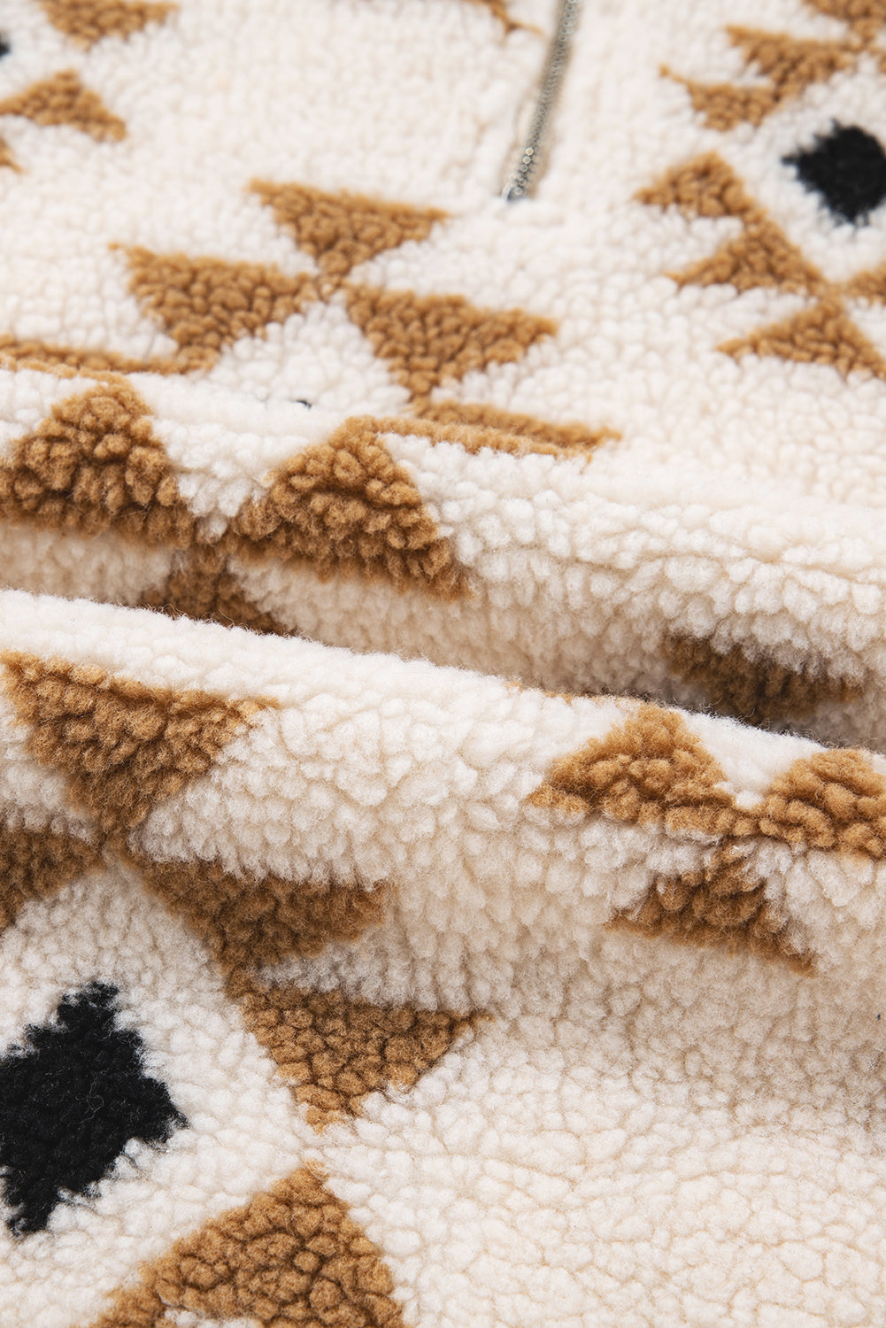 Khaki Aztec Print Sherpa Quarter Zip Collar Sweatshirt