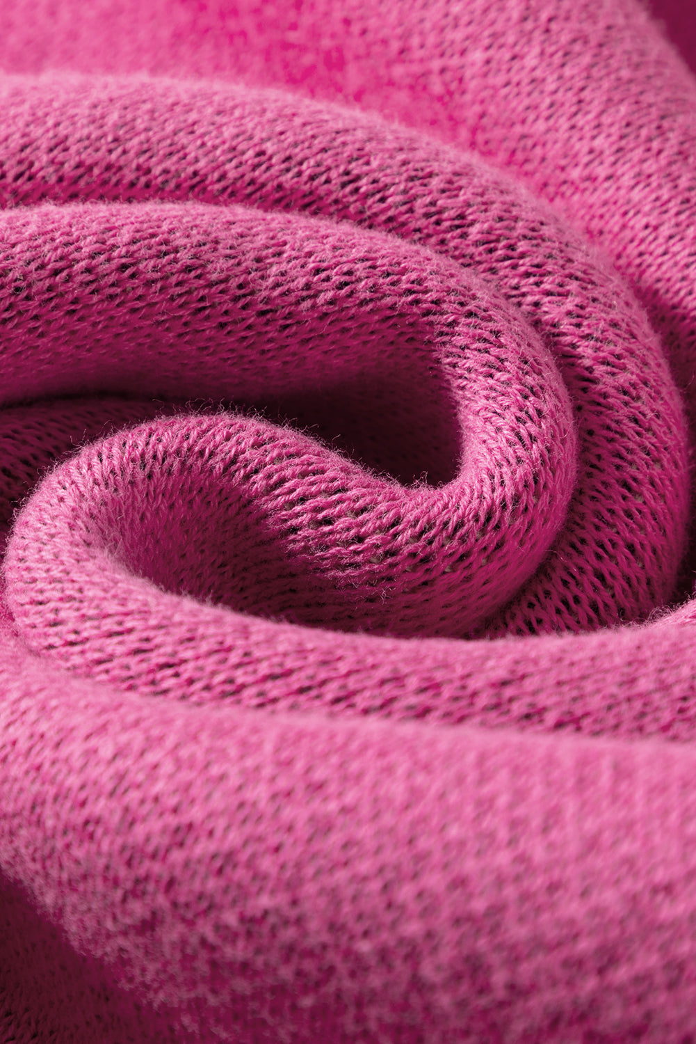Pink Leopard Ruffled Sleeve Round Neck Knit Sweater