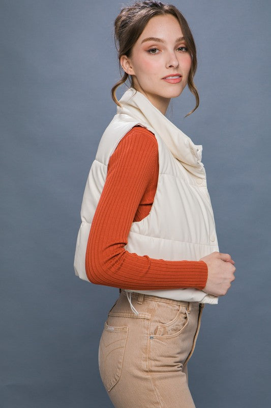 PU Faux Leather puffer West With Snap Button