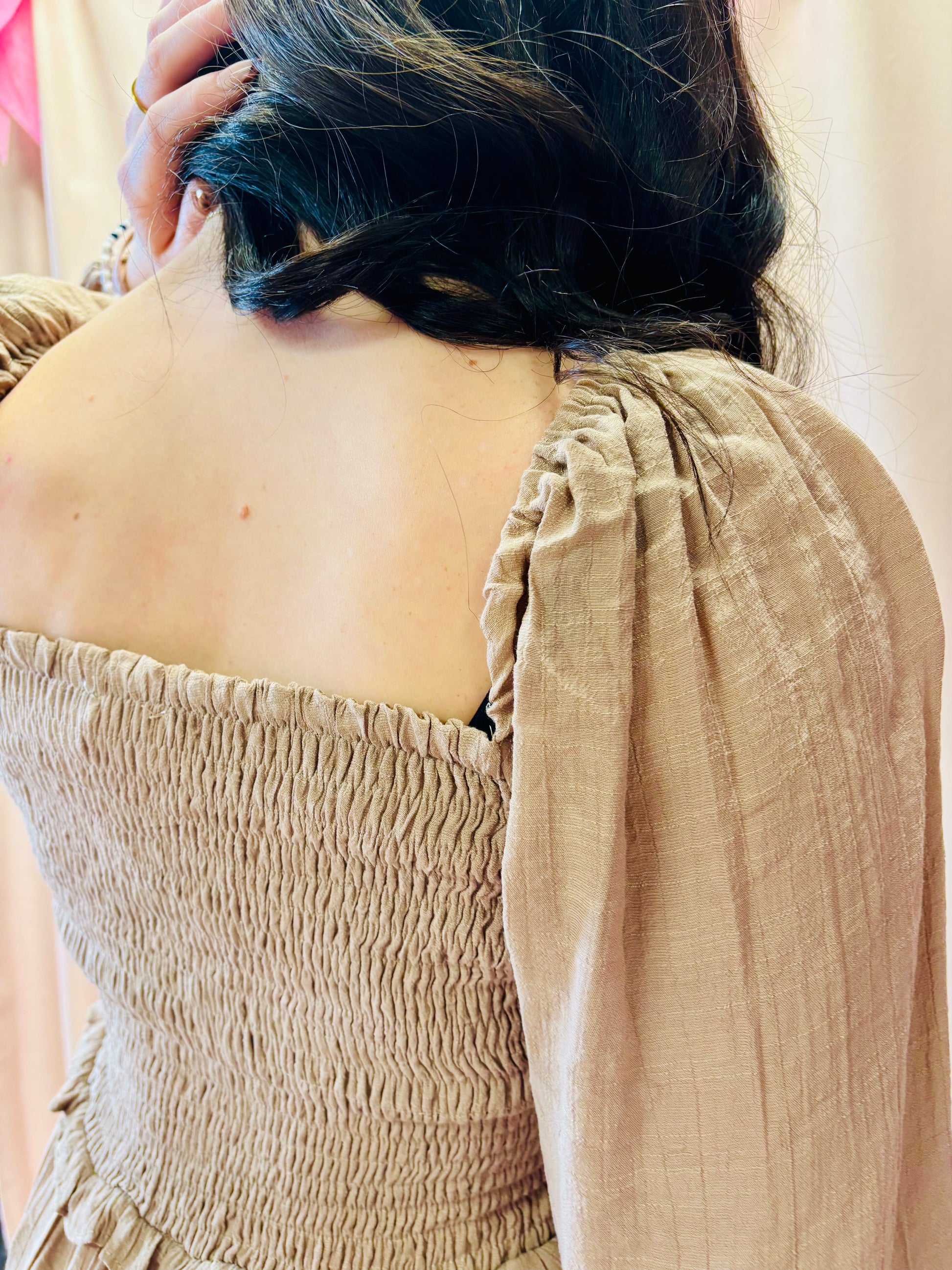 Smocked mini dress with square neckline